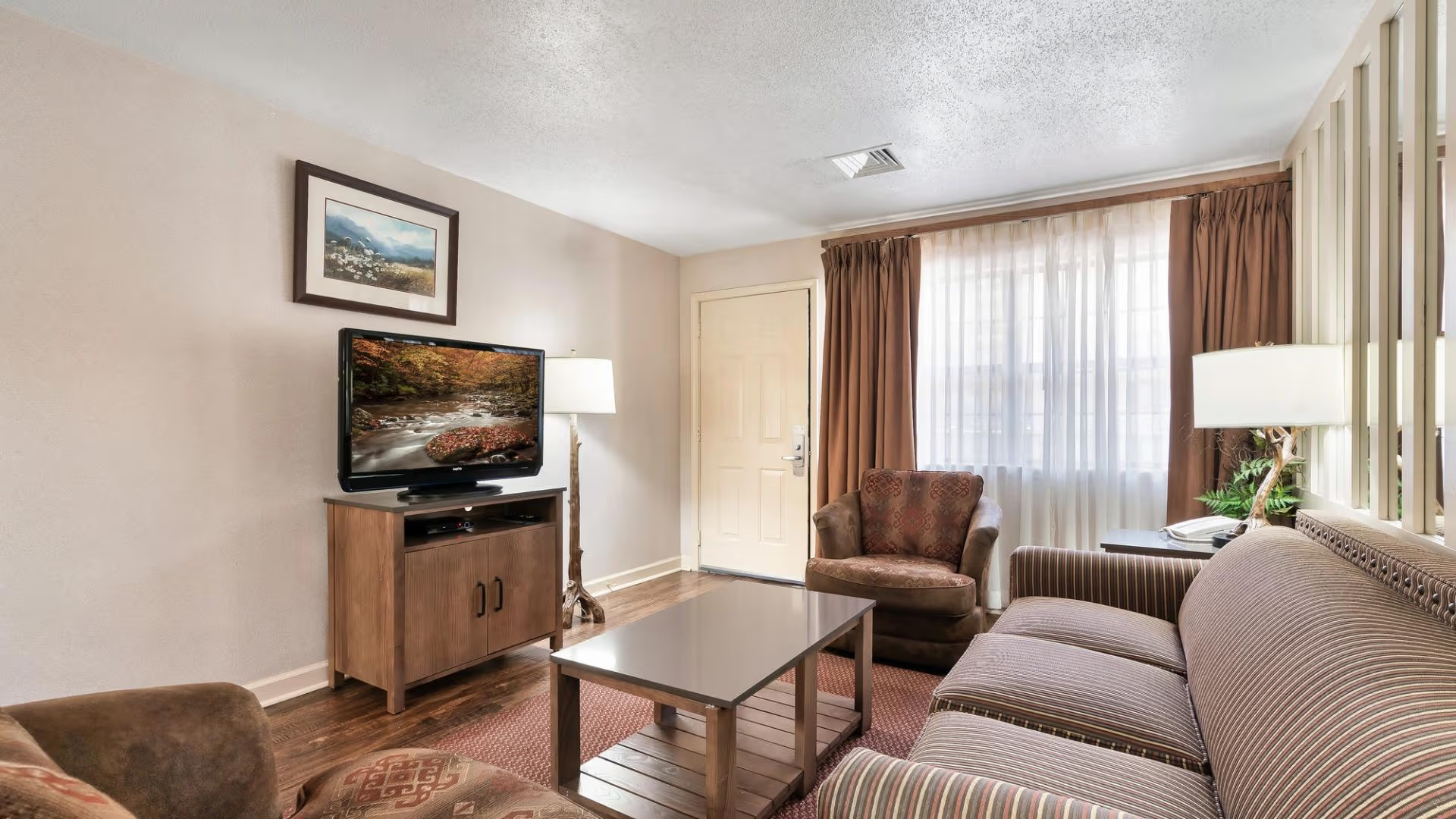 After a day of adventure, gather around your in-room fireplace. The flickering glow creates the perfect mountain ambiance, inviting conversation and simple relaxation as the cool evening air settles over the Smokies.